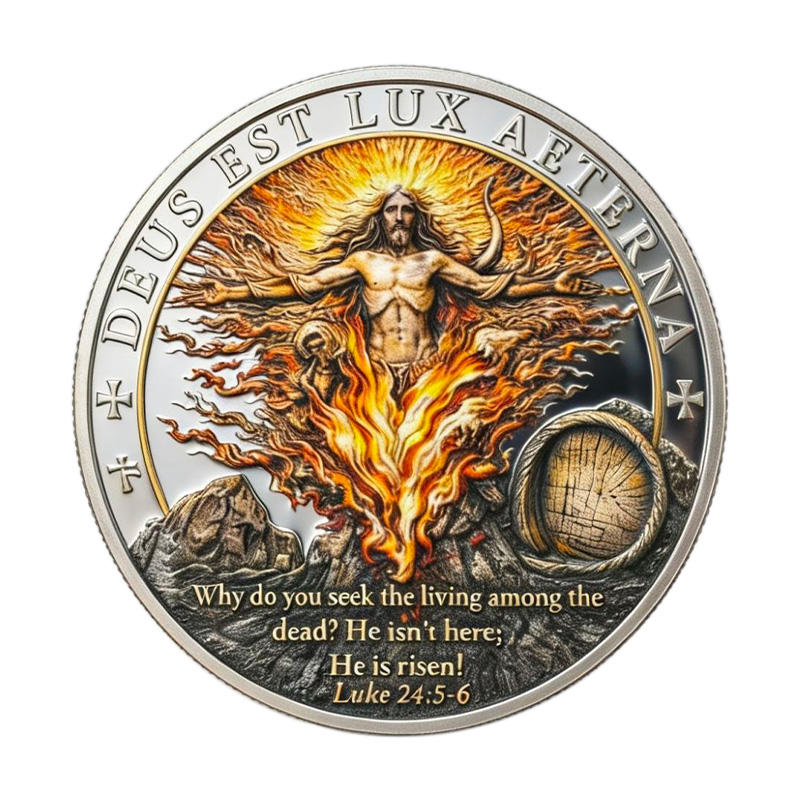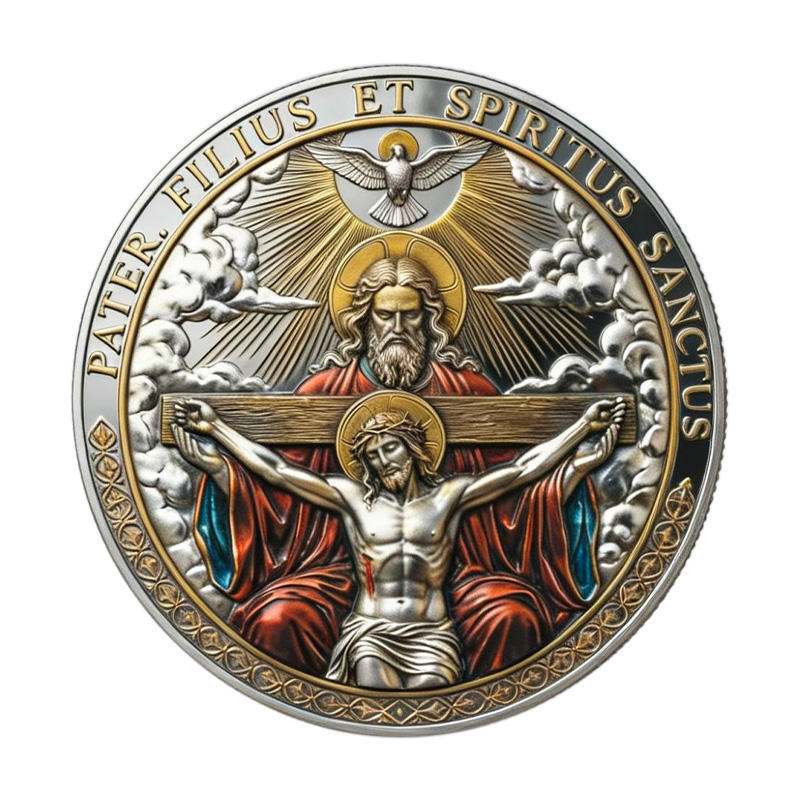 Moneta Commemorativa Deus Est Lux Aeterna, Artigianato in Metallo, Decorazione a Tema Padre Figlio Spirito Santo, Regalo da Collezione