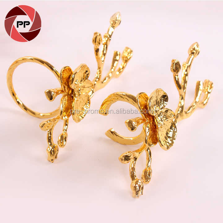 Stock oro/argento metallo prugna fiore portatovagliolo per la decorazione della tavola di nozze