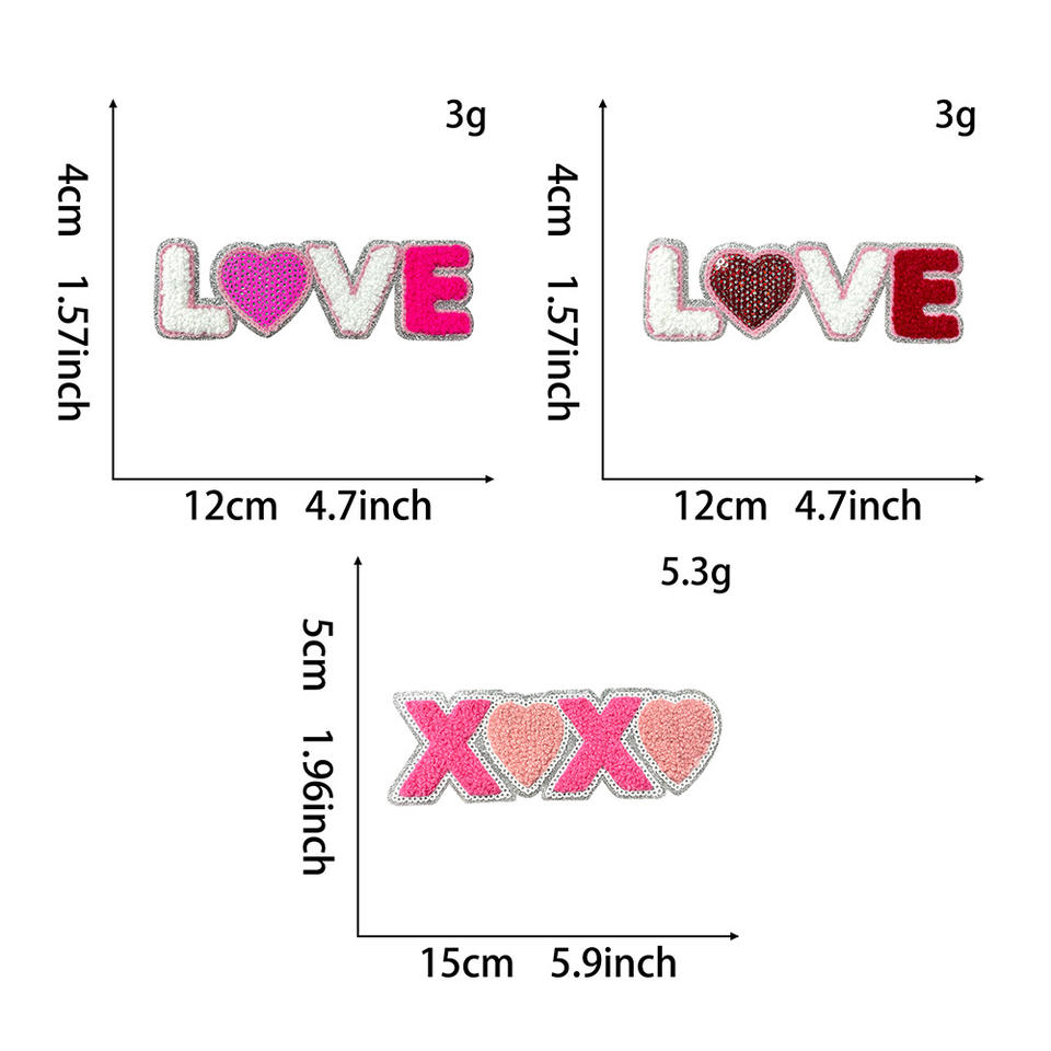 Stock Iron on Chenille Embroidered Gold Heart Be Mine love XOXO Story Chenille Valentine Patch for T-shirt Hoodies