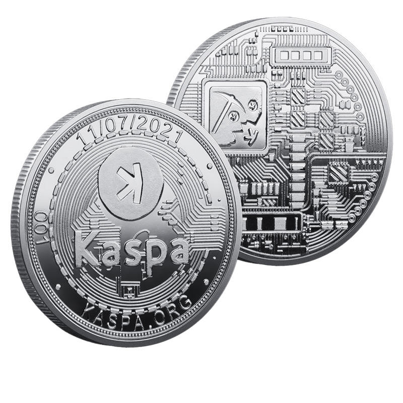 Moneta Commemorativa Kaspa in Stock, Due Stili di Colore, Chip Metallico di Alta Qualità, Elemento per Mining, Data 2021, Logo, Decorazione da Collezione