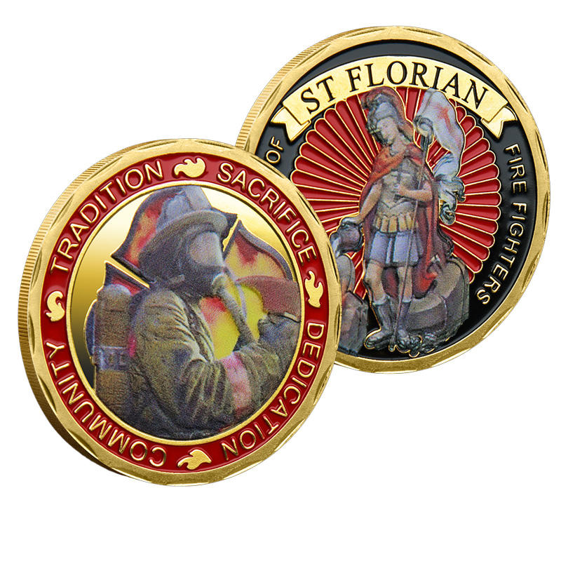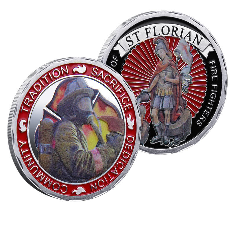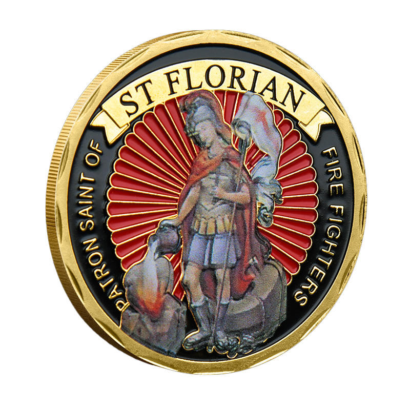 Moneta Commemorativa in Metallo di San Floriano Vigilante dei Pompieri, Souvenir a Tema Tradizione e Dedizione
