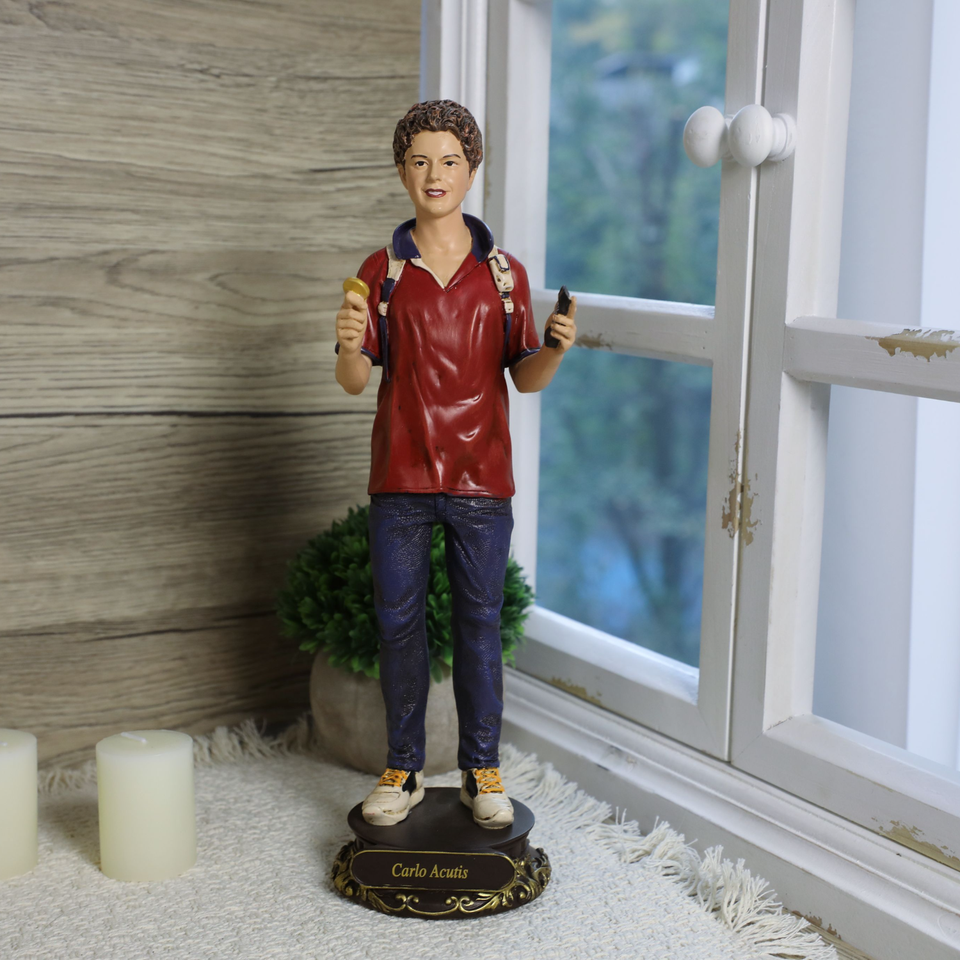 Statue Religiose Cattoliche in Resina, Articolo Cristiano di 30,5 cm di Altezza, San Carlo Acutis, Regalo Cristiano Romano