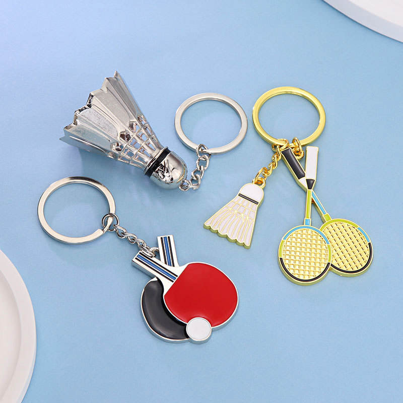Stock Sport ciondolo Souvenir regalo ping pong Badminton portachiavi Golf boxe Baseball Bowling vari Sport in lega di zinco portachiavi