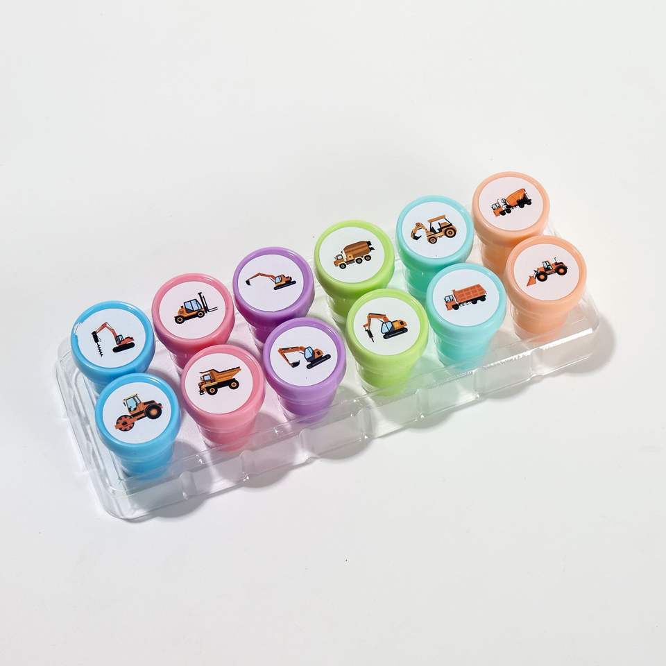 Stocked 12pk Cartoon Self-ink Toy Stamp Set Round Small Stamps for Children's Holidays