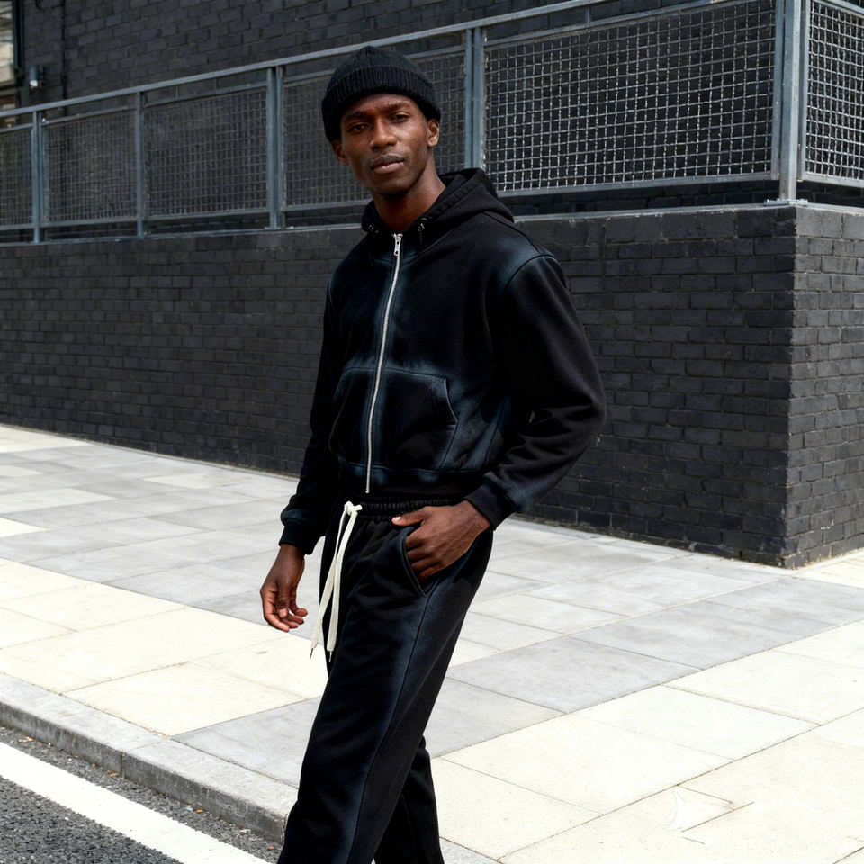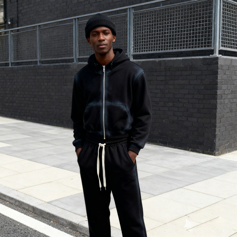 Tuta Sportiva Effetto Stone Wash, Produttore di Tute Personalizzate, Abbigliamento Streetwear da Uomo, Set di 2 Pezzi W130