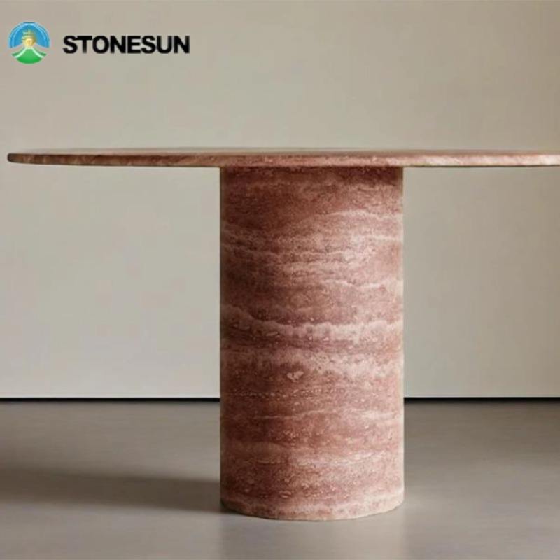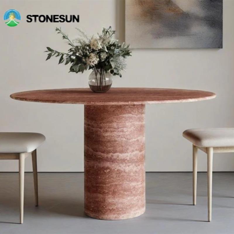StoneSun moderno a buon mercato in pietra naturale tavolo da pranzo rosso travertino in marmo pietra per cucina soggiorno tavolo da pranzo