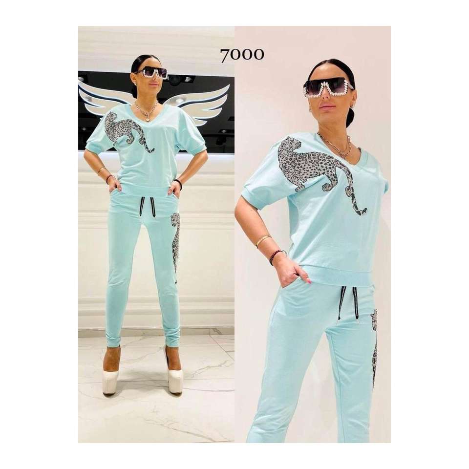 Stoned Leopard Crystal Stone Tracksuit Set - Mint