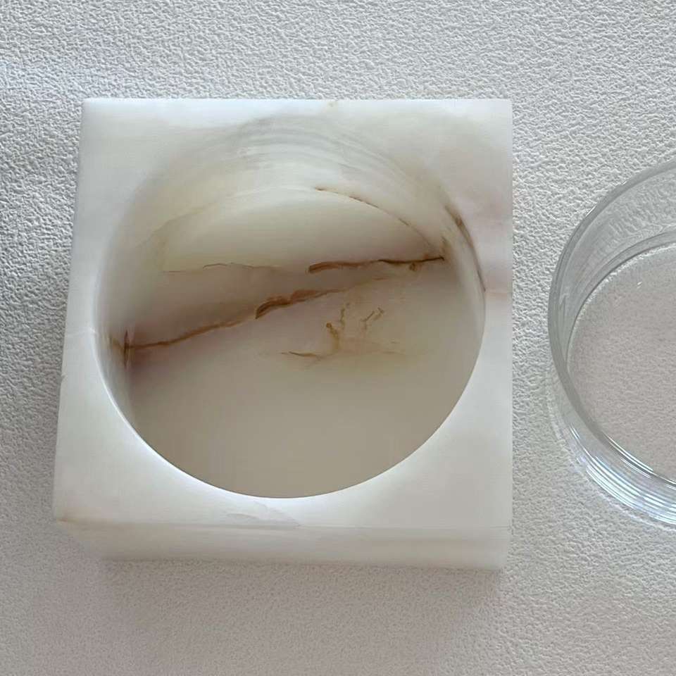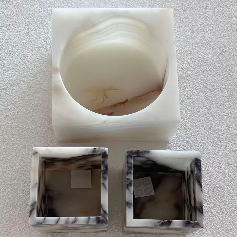 Stonekoc bianco pietra di onice Calacatta in marmo viola pietra naturale vuoto portacandele tazze vasetto ambiente Vintage ornamento