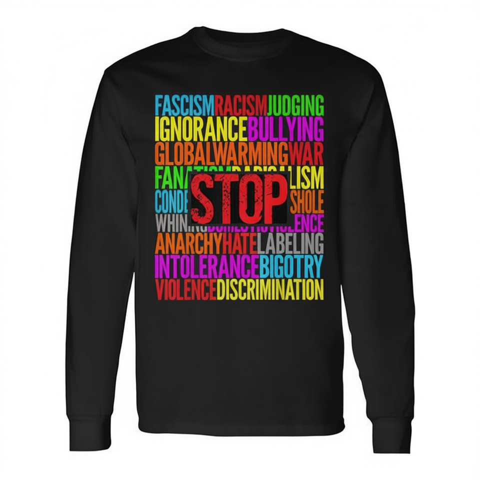 Maglietta in Cotone a Maniche Lunghe per Adulti: Abbigliamento Promozionale per la Consapevolezza contro la Discriminazione, l'Ignoranza, la Violenza, il Disprezzo e il Racismo