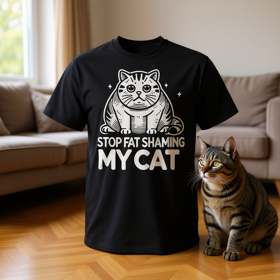 T-shirt Stop Fat Shaming My Cat, design Chubby Chunky Cats, taglia unisex per adulti