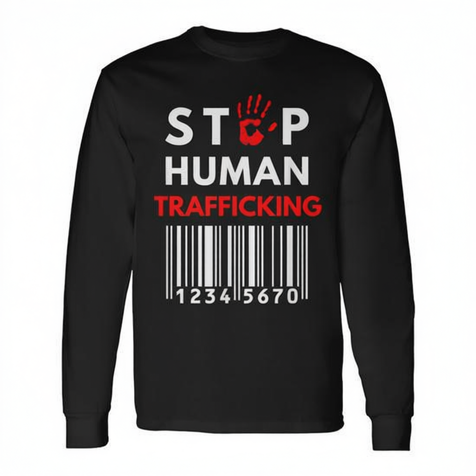 T-shirt a maniche lunghe contro il traffico umano, design anti-schiavitù per la sensibilizzazione