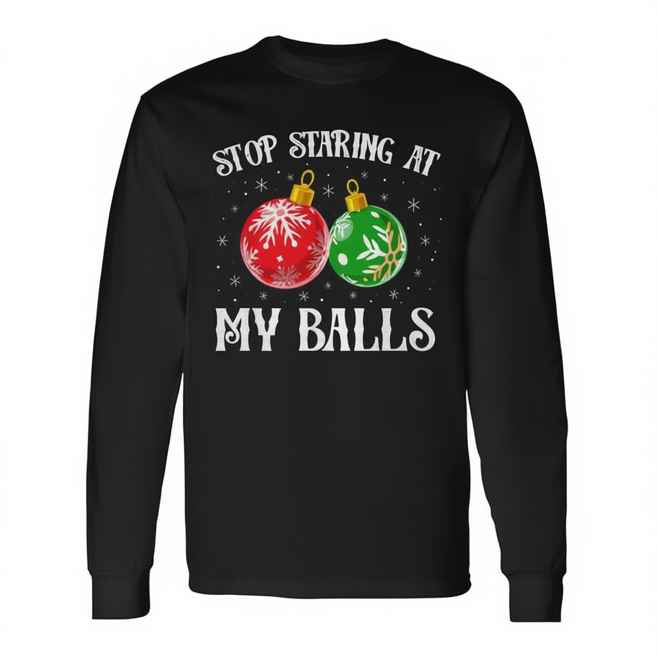 Non guardare più a quei pinguini dei miei testicoli - Maglietta a maniche lunghe con umorismo natalizio per adulti