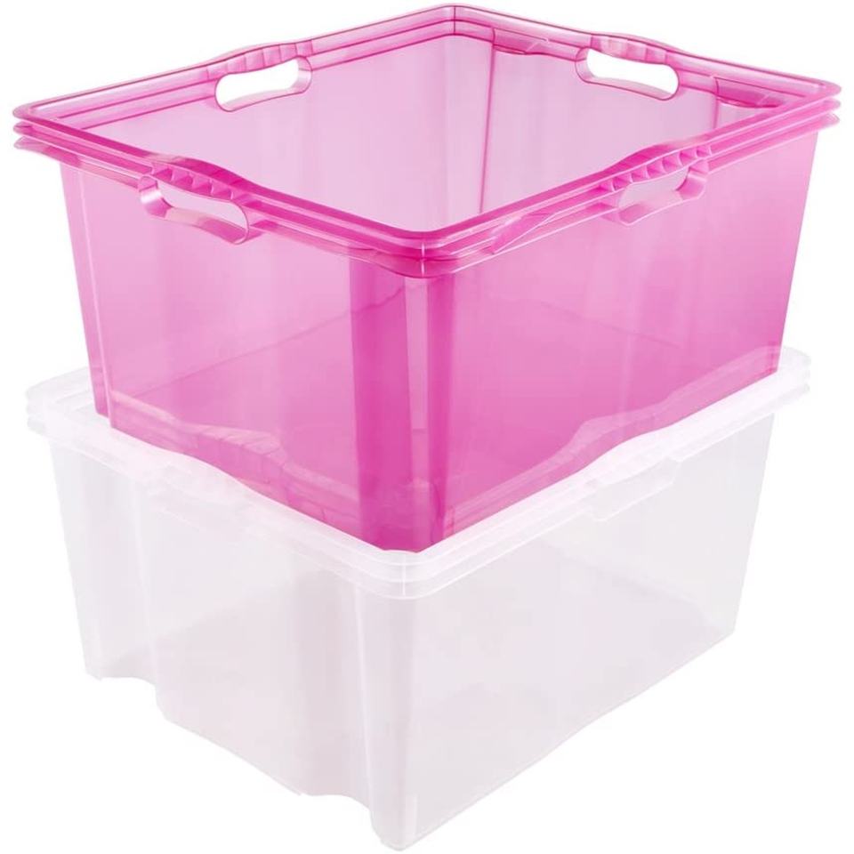 Scatola portaoggetti con maniglie integrate, dimensioni: XXL, 52 x 43 x 26 cm, 44 l, trasparente