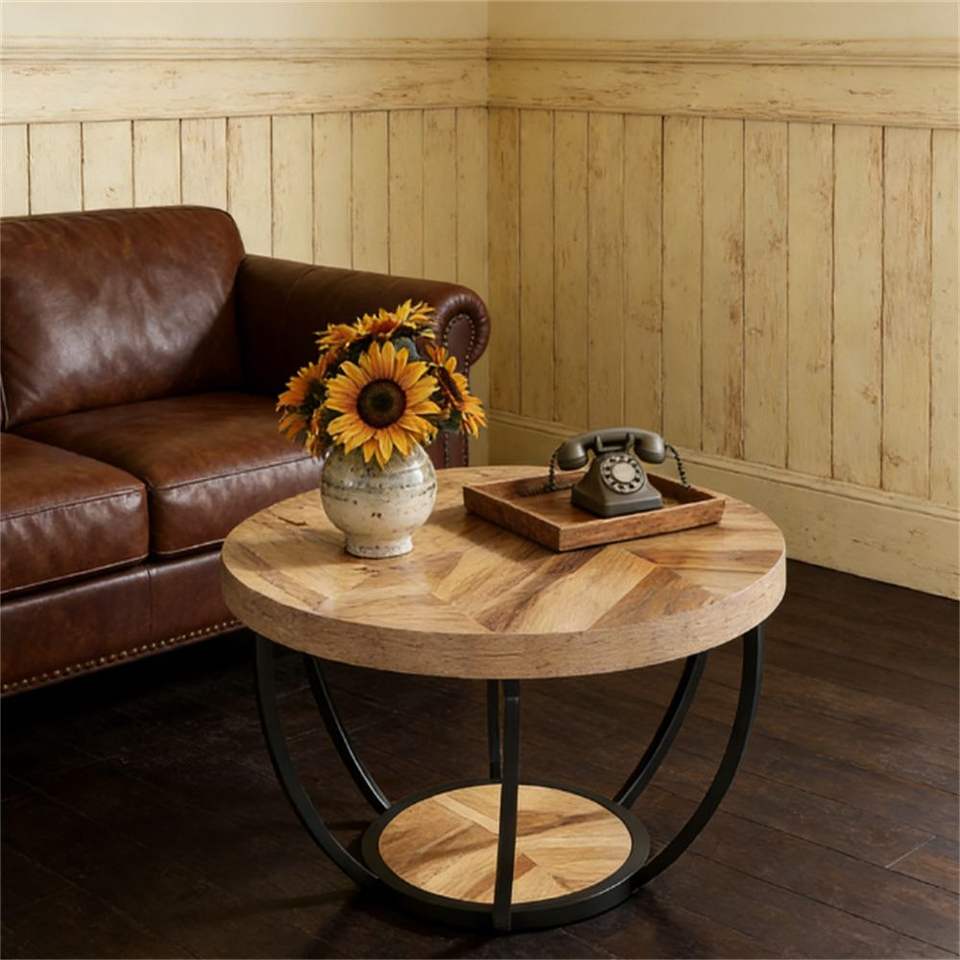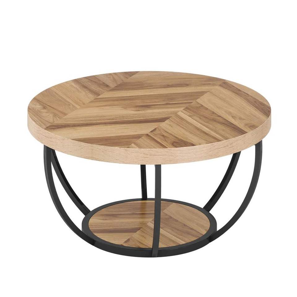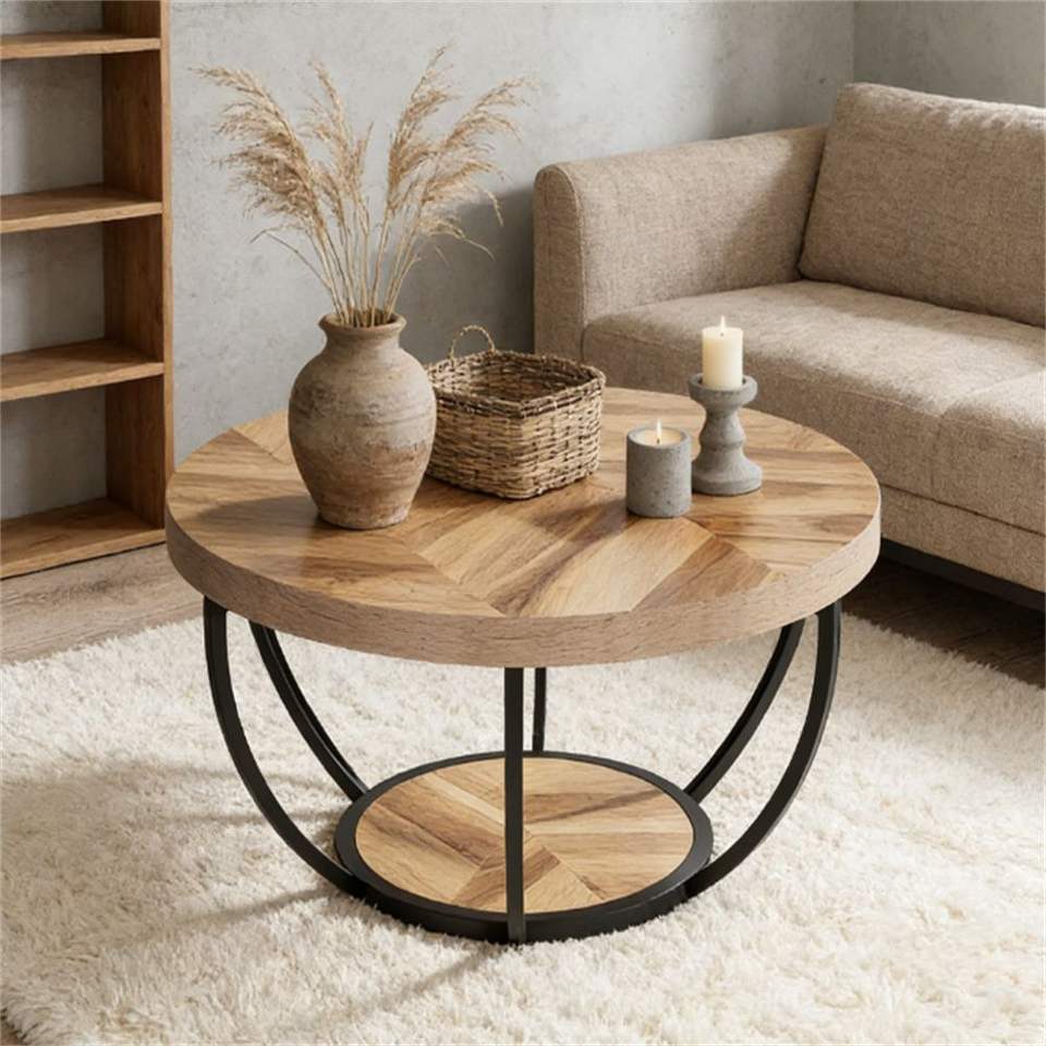 Tavolino da Caffè Rotondo in Legno con Spazio di Archiviazione, Tavolino Centrale per Cocktail dal Design Elegante