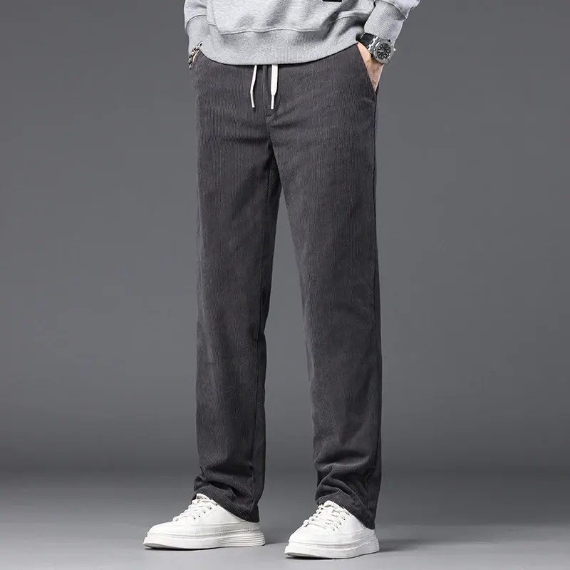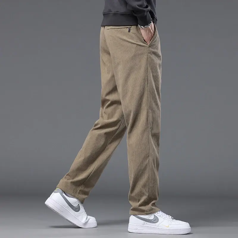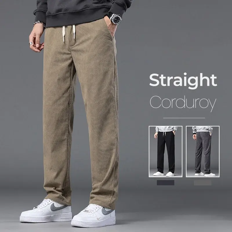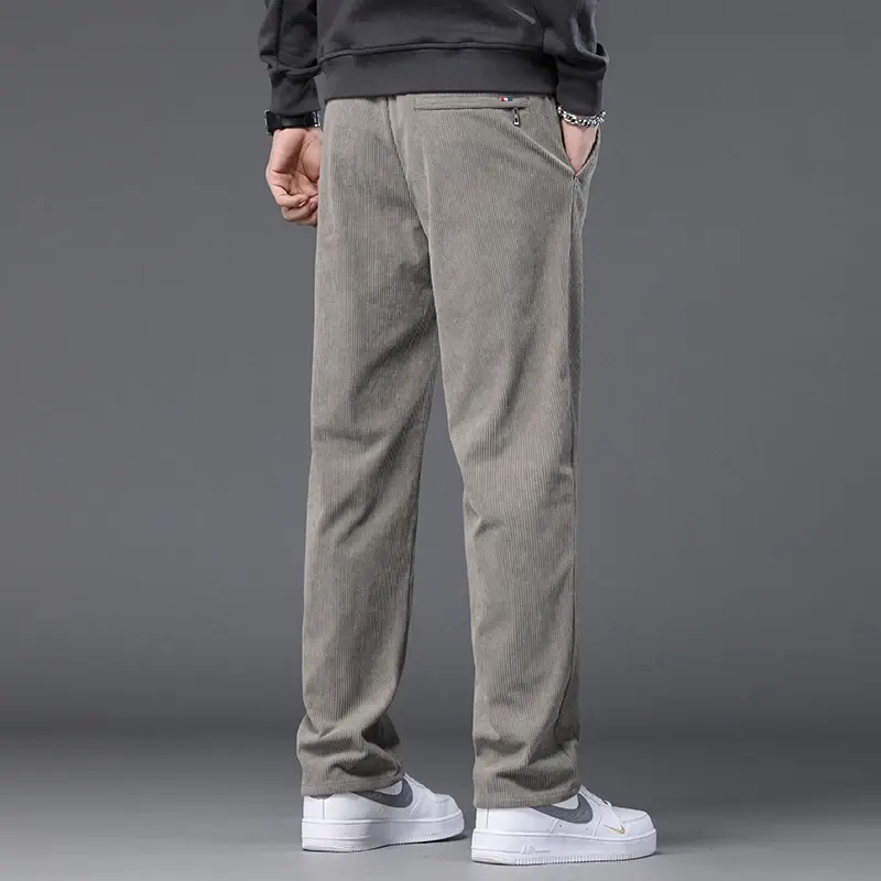 Straight Corduroy Classic Male Pants Khaki Black Gray Baggy Fashion Elastic Waist Trousers Soft Stretchy Casual Men's Clothing