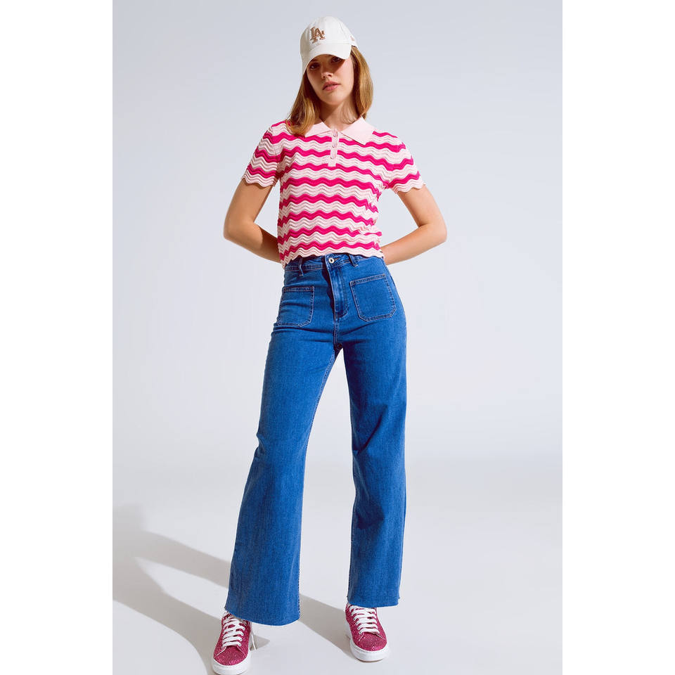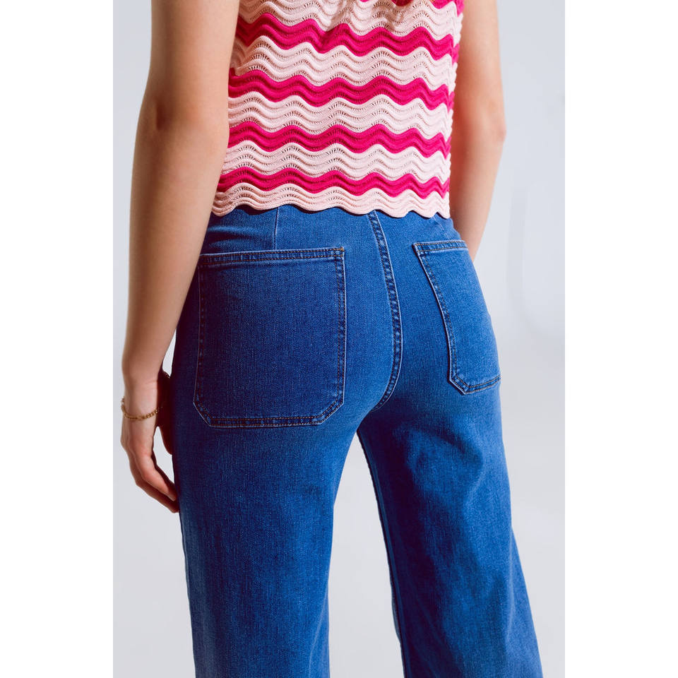 Jeans a Gamba Dritta con Dettaglio Tasche Frontali in Lavaggio Medio