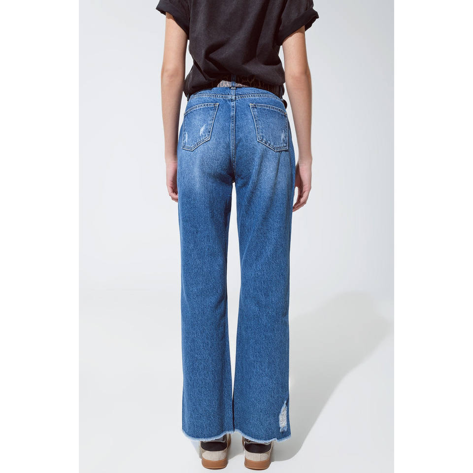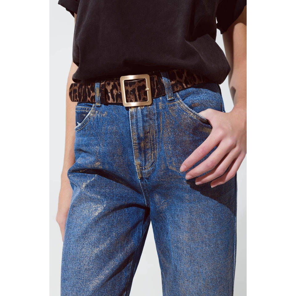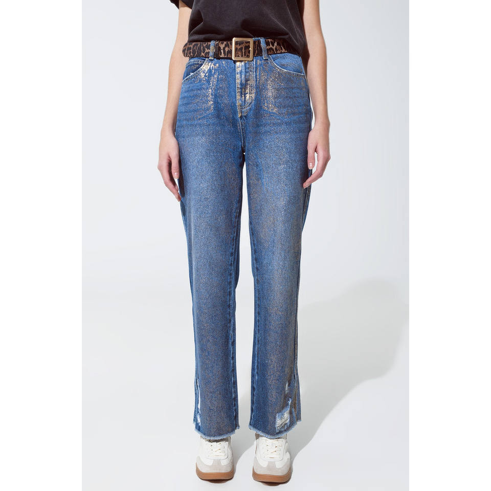 Jeans a Gamba Dritta Strappati con Riflessi Metallici Dorati