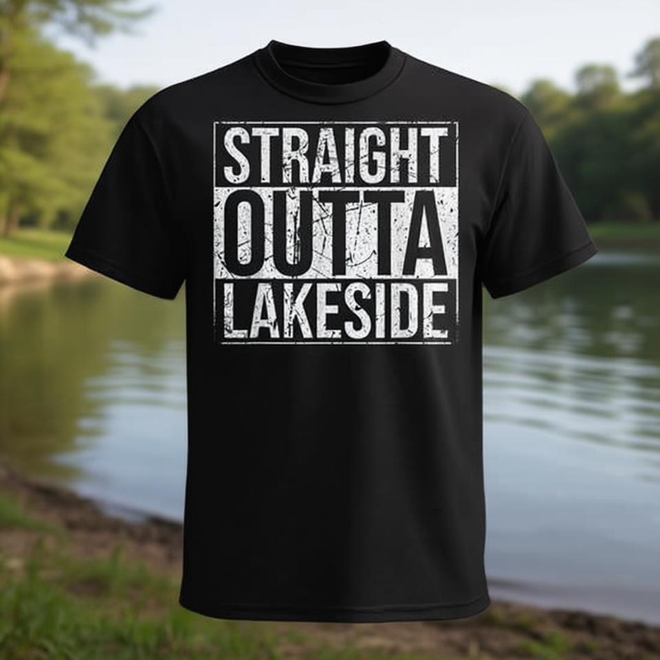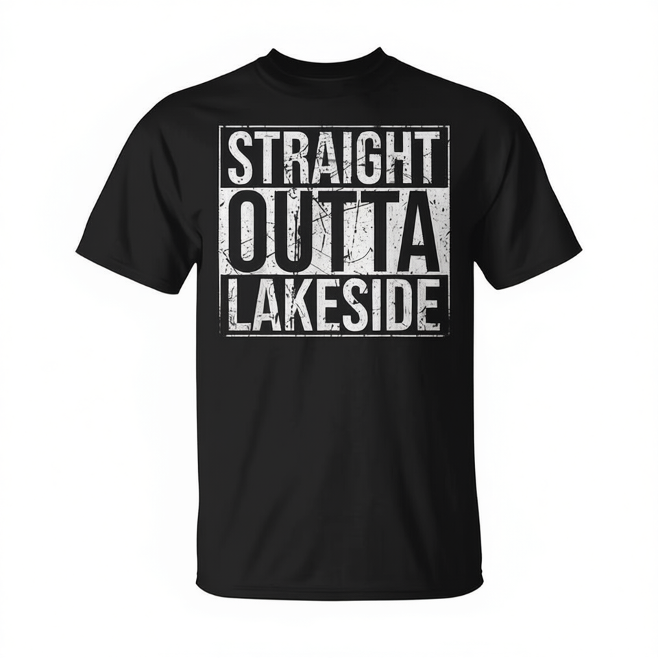 T-shirt Straight Outta Lakeside Nera Unisex Taglia M per Adulti Girocollo Manica Corta Stampa Serigrafica