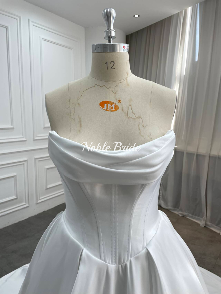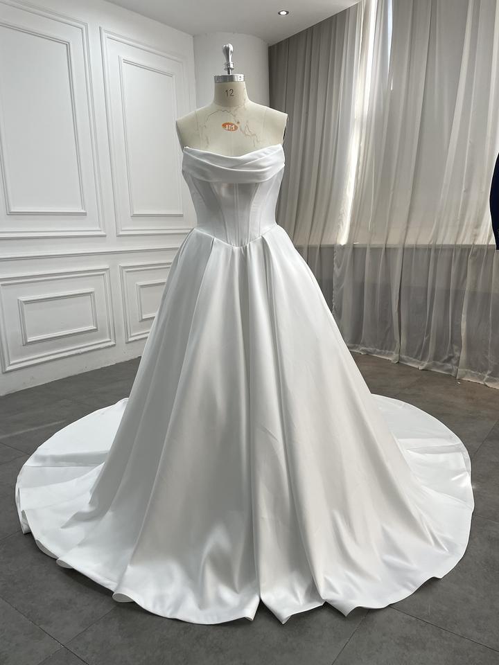 Abito da Sposa Senza Spalline in Raso con Strascico a Cappella, Elegante Vestito da Sposa Bianco per la Sposa 2025