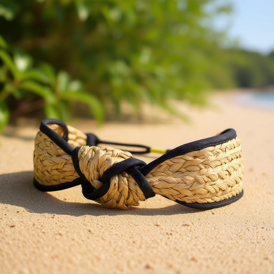 Fascia per capelli con bordo in paglia e nodo decorativo per donna, accessorio moda estivo