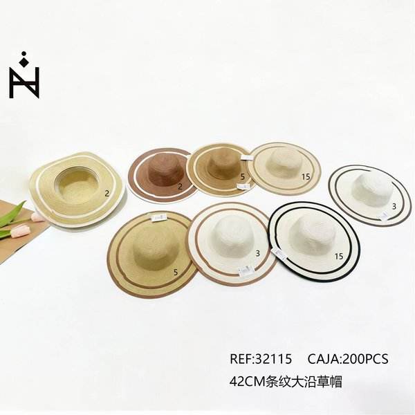 Cappello di paglia 42 cm a righe con tesa larga per protezione solare estiva e uso all'aperto
