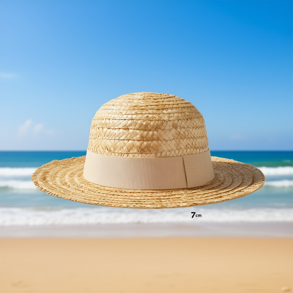 Cappello di Paglia Angelina con Tesa da 7 Cm, Protezione Solare da Spiaggia in Erba Naturale, Unisex per Adulti, Cappello Estivo