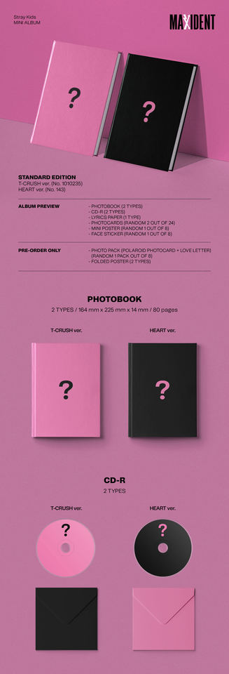 Stray Kids [MAXIDENT] (T-CRUSH Ver. / HEART Ver.) Standard Edition (Random Version) Korean Language for All Ages