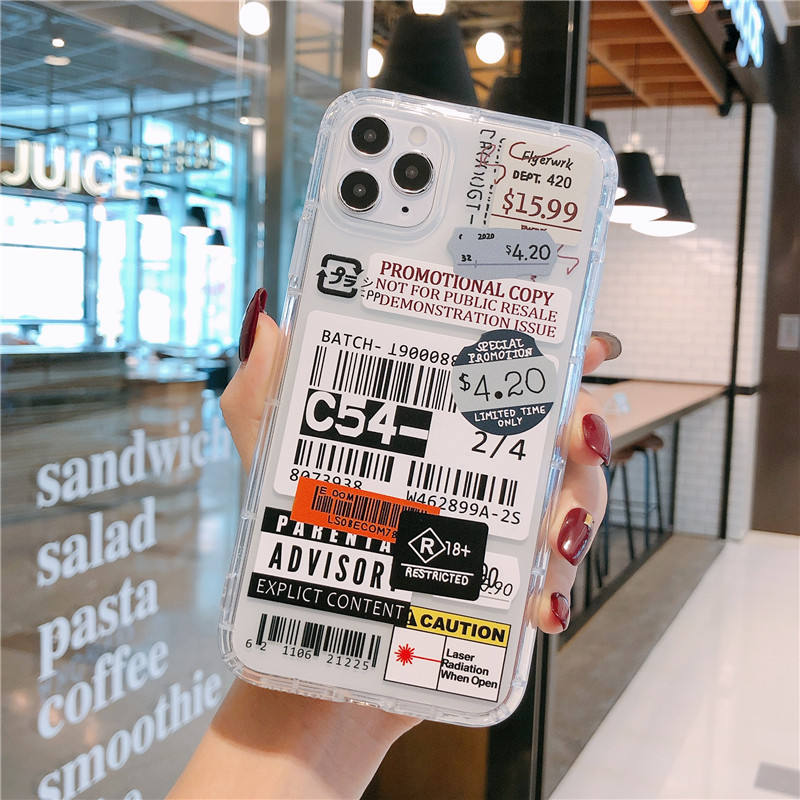 Custodie in Silicone Street Fashion per iphone 11 12 Pro xs Max 5 5S 6 6S 7 8 Plus X XR 12 Mini Clear Bar code label Cover per coppia