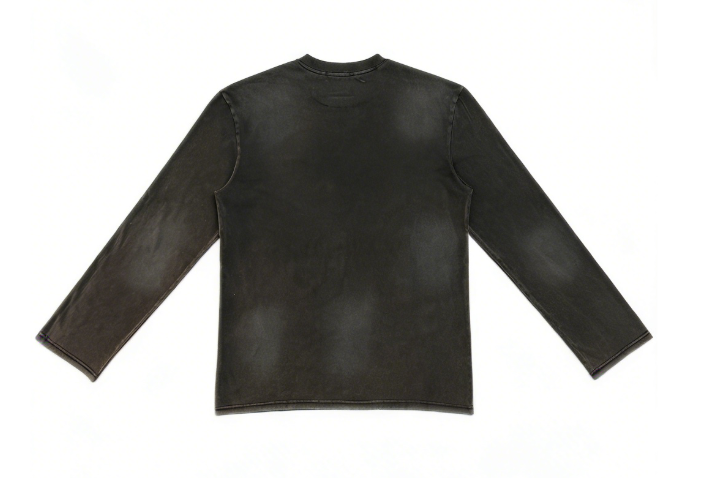 Street Gothic T-Shirt with Blue Gradient Text Design Black Washed Long Sleeve Streetwear Oversized Men's Tee