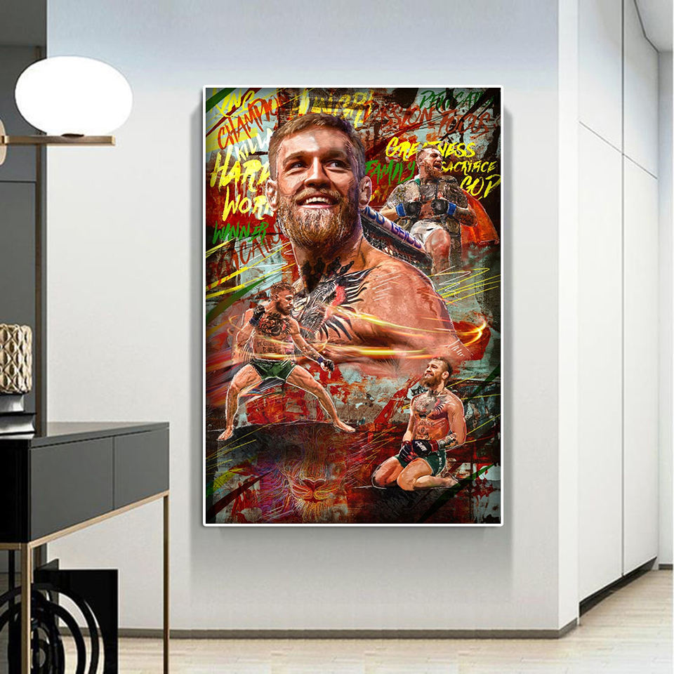 Street Graffiti Art Boxing Champion Portrait Poster and Print Canvas Gym Wall Art Room Decor Oil Paintings Art