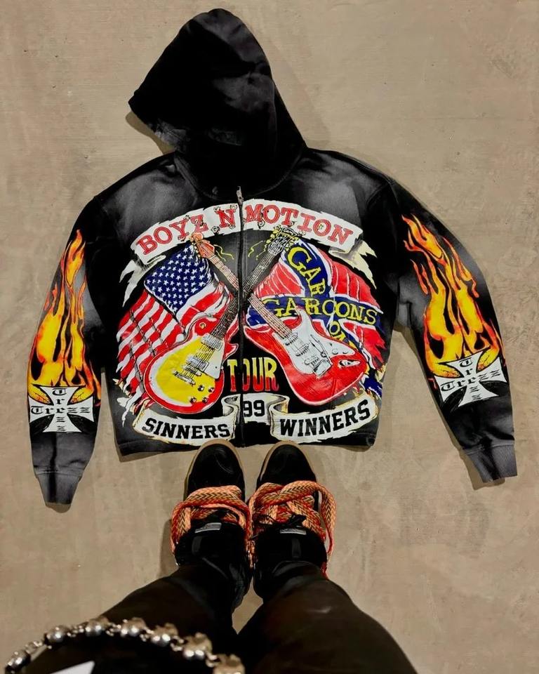 Street Hip-hop Fashion Rock Hoodie Men Y2k Casual Loose Man Hoodi Gothic Punk High Street Trendy Brand Oversized Sweatshirt