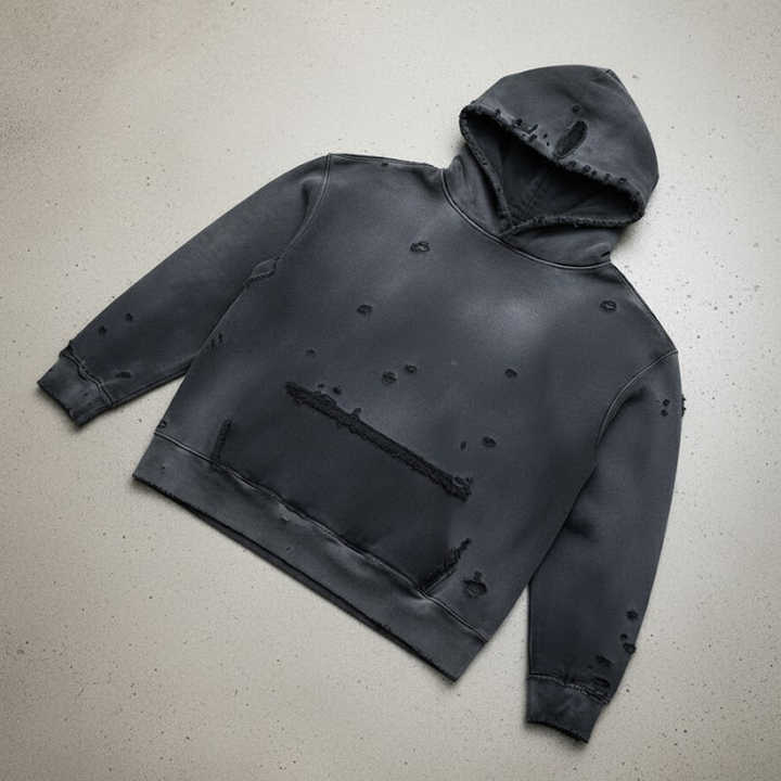 Streetwear Clothing Manufacturers Custom Mens Heavyweight Vintage Ripped Distressed Oversized Acid Wash Hoodie Sweatshirt