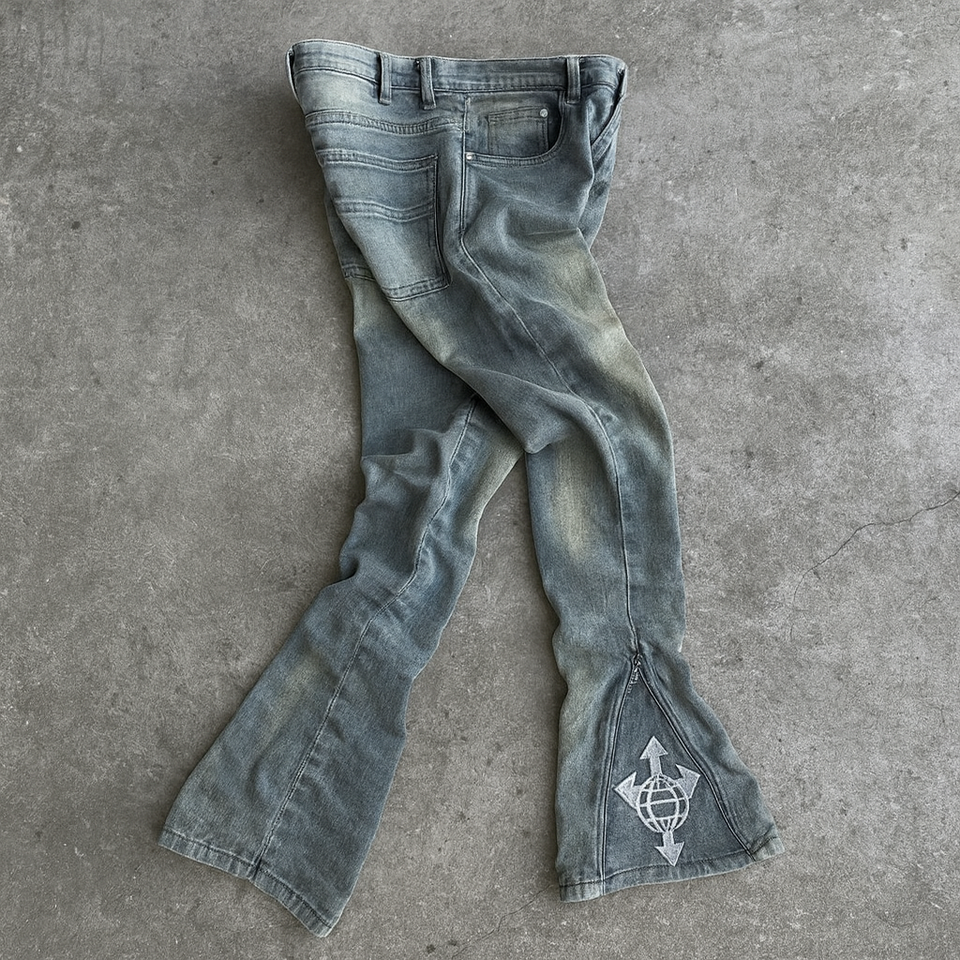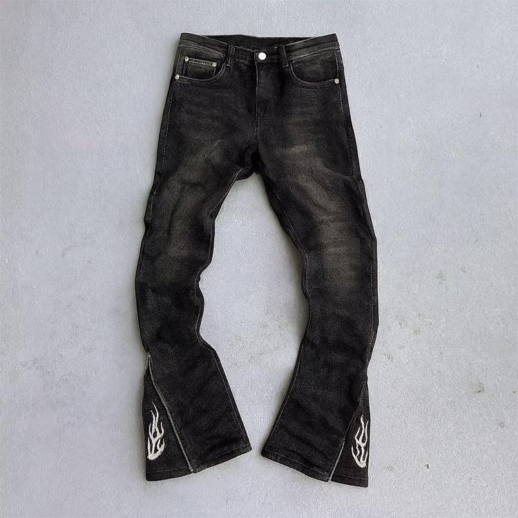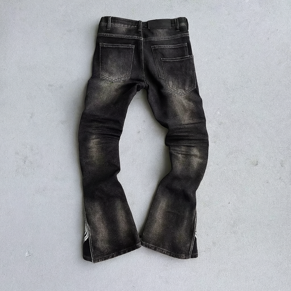 Streetwear Custom Man Vintage Wash Skinny Stacked Zip up Open Bottom Flare Denim Jeans Pants Flared Jeans Men