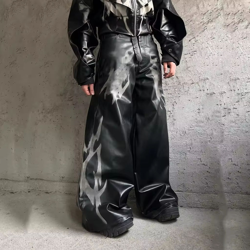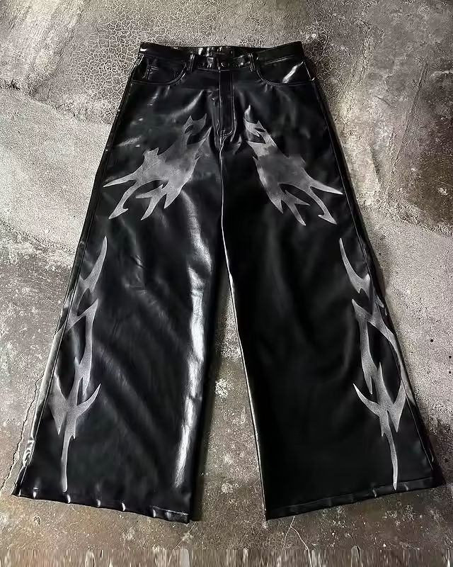 Streetwear pantaloni larghi larghi a gamba larga stampati personalizzati pantaloni in finta pelle per uomo