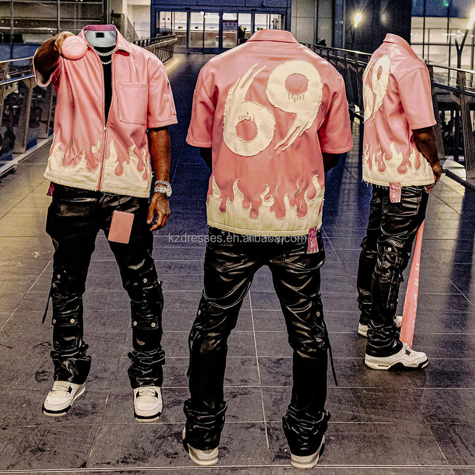 Streetwear Manufacturer Custom logo Summer Zip up Work Distressed Embroidery Patch Jacket Boxy Leather Shirts for Men