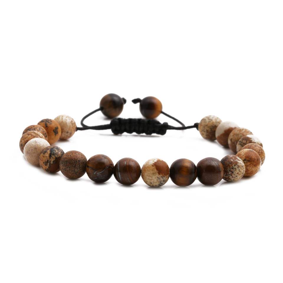 Braccialetto Elastico in Pietra Naturale Fatto a Mano per Yoga, Meditazione, Cristalloterapia, Macramè Boho, Braccialetto dell'Amicizia
