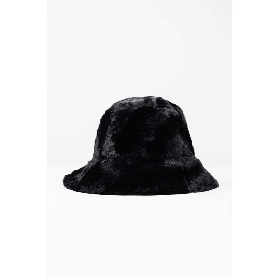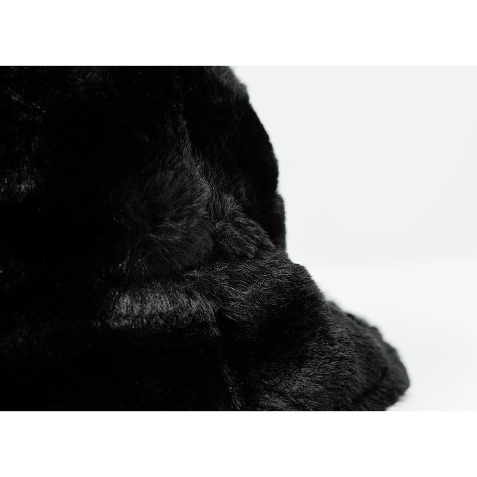 Cappello Bucket Solido Nero in Tessuto Velour Terry, Invernale Casual con Ricamo 3D, Fiocchi Reversibili, 100% Poliestere, Unisex per Adulti