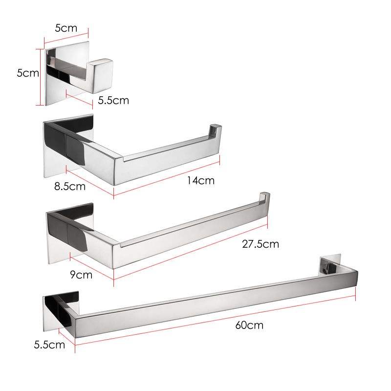 Strong Viscosity Adhesive Bathroom Accessories Set 4 Pieces Robust 304 Rustproof Stainless Steel Rack Towel Bar Toilet Paper