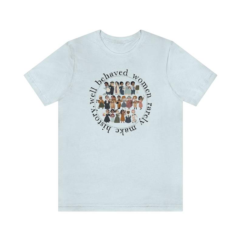 Maglietta Strong Women History da donna in cotone, t-shirt casual femminista con scollo rotondo e maniche corte, stampata in jersey