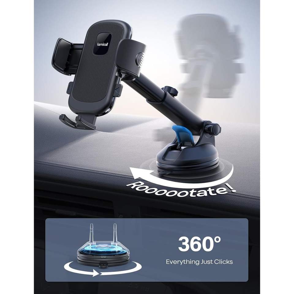 Supporto per Telefono da Auto di Massima Resistenza con Rotazione a 360 Gradi, Sgancio Rapido e Regolabile