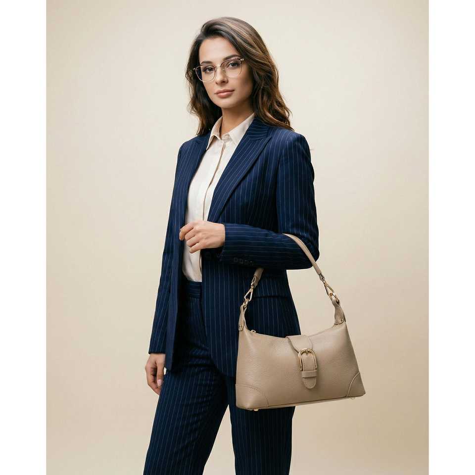 Borsa a Tracolla Strutturata da Donna in Vera Pelle Dollaro - Design Crossbody - Made in Italy Art. 26082