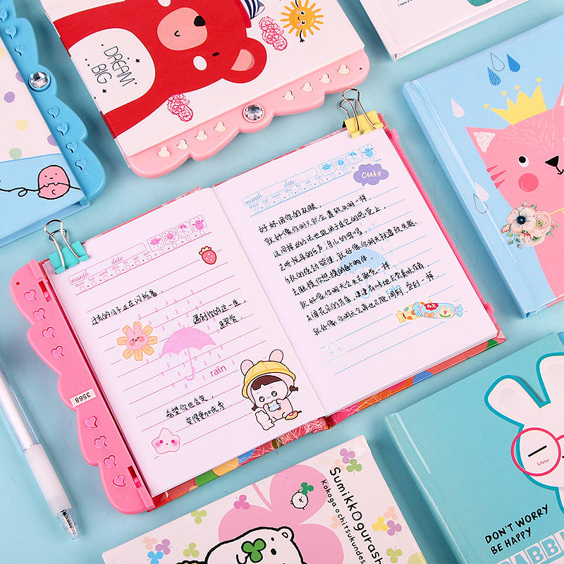 Diario Studentesco con Lucchetto, 100 Pagine, Articoli di Cancelleria, Agenda, Quaderno con Password a Cartoni Animati