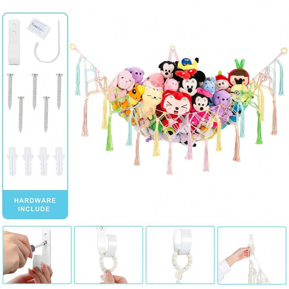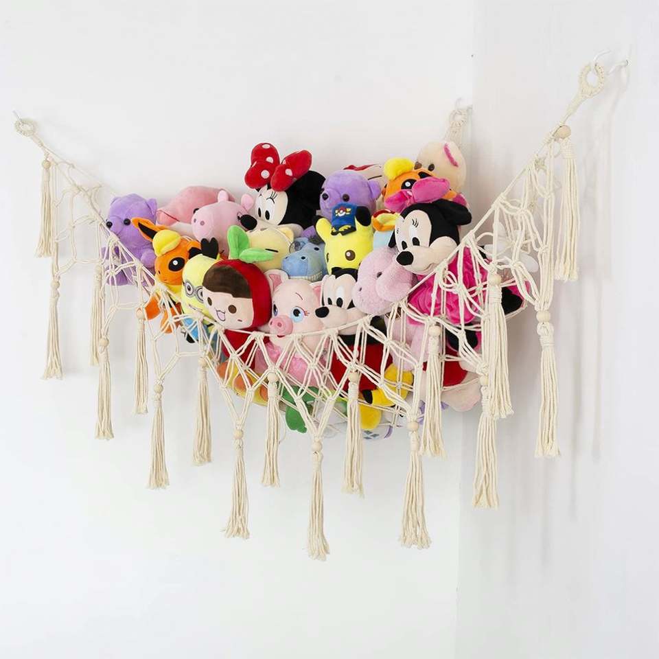 Amaca giocattolo di peluche appesa con nappe roba Boho grande angolo peluche porta rete per camera da letto per bambini camera da letto
