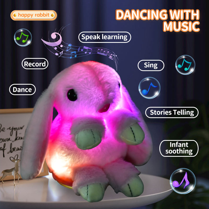Ripieni e peluche parlanti B /O registrazione di illuminazione di musica storia che racconta rilassante bambola di pezza peluche coniglio cartone animato giocattolo educativo peluche