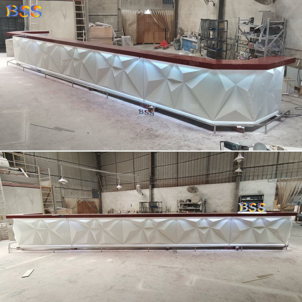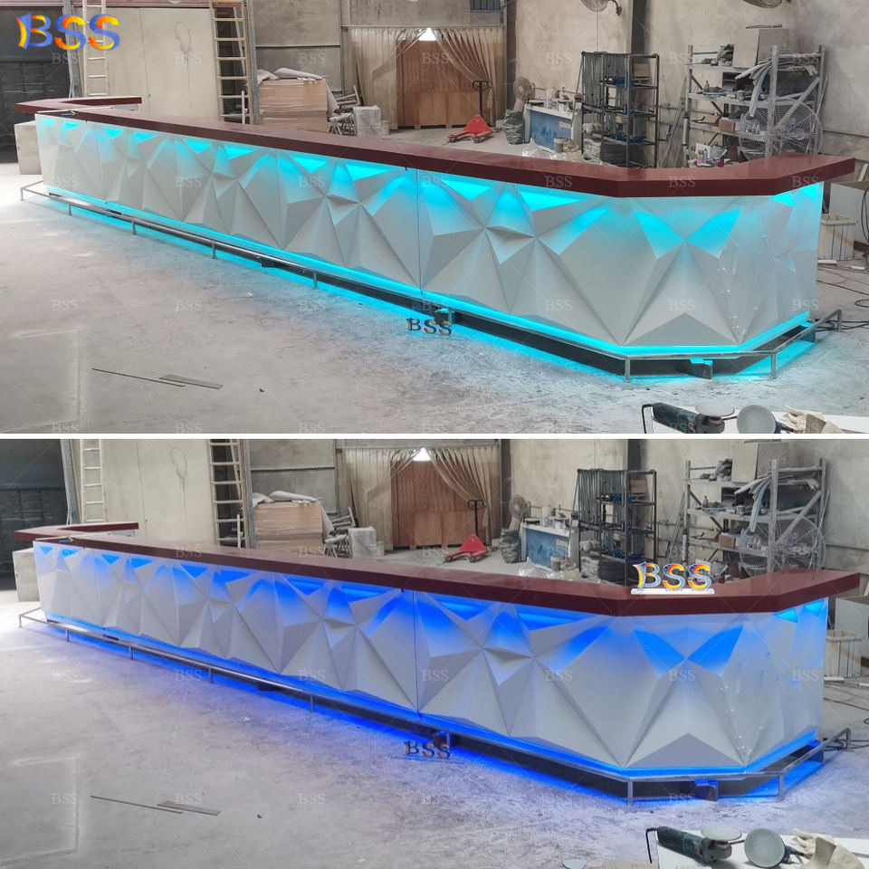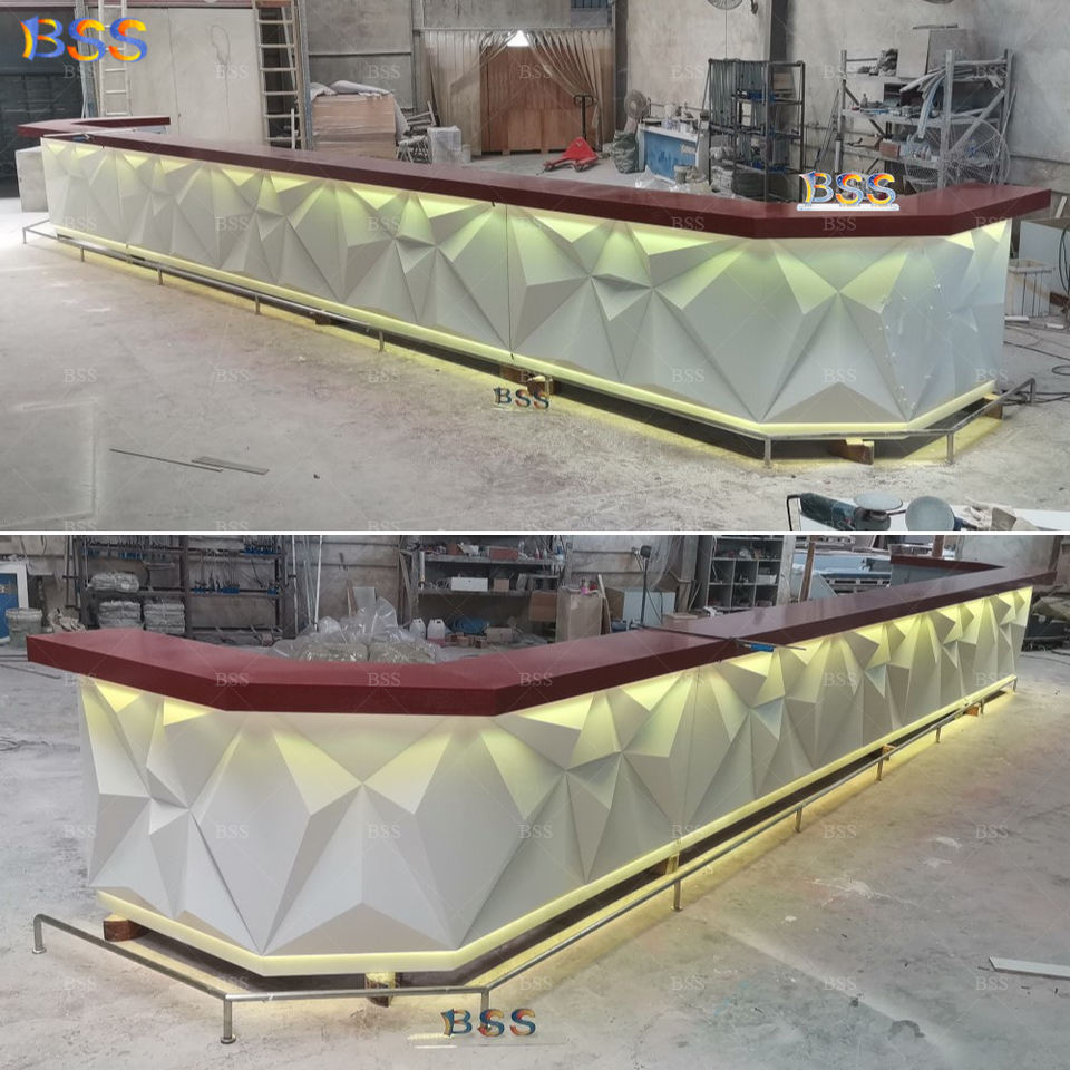 Idee Straordinarie per Banconi da Discoteca, Bancone Bar su Misura in Corian Bianco e Rosso, Grande Forma a U, Moderno Bancone Bar di Lusso con LED per Nightclub