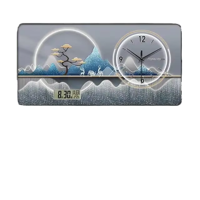Orologio da parete analogico-digitale design a vista con paesaggio dorato per soggiorno, con lancette, min. 1 pz