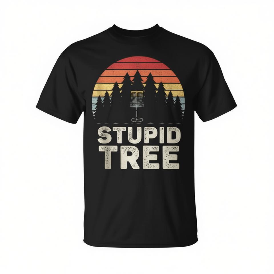 T-shirt Stupid Tree Disc Golf dal design vintage retrò, taglia unisex per adulti
