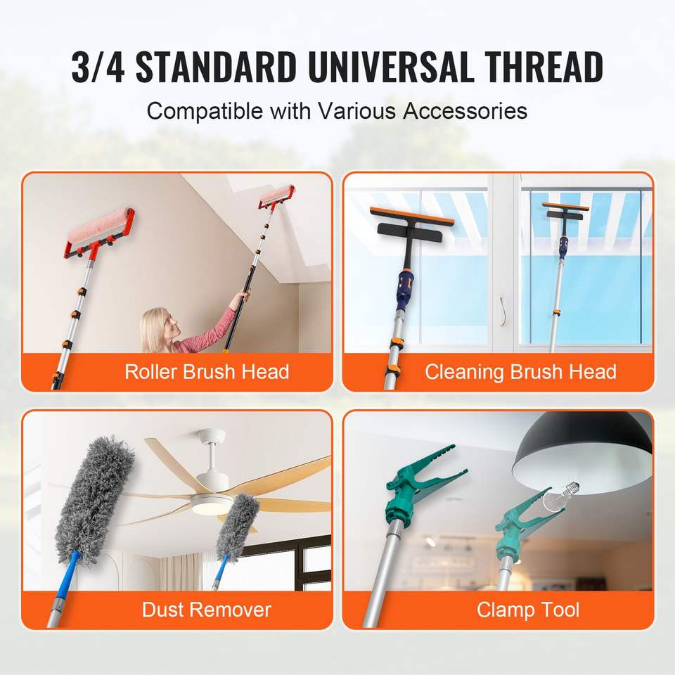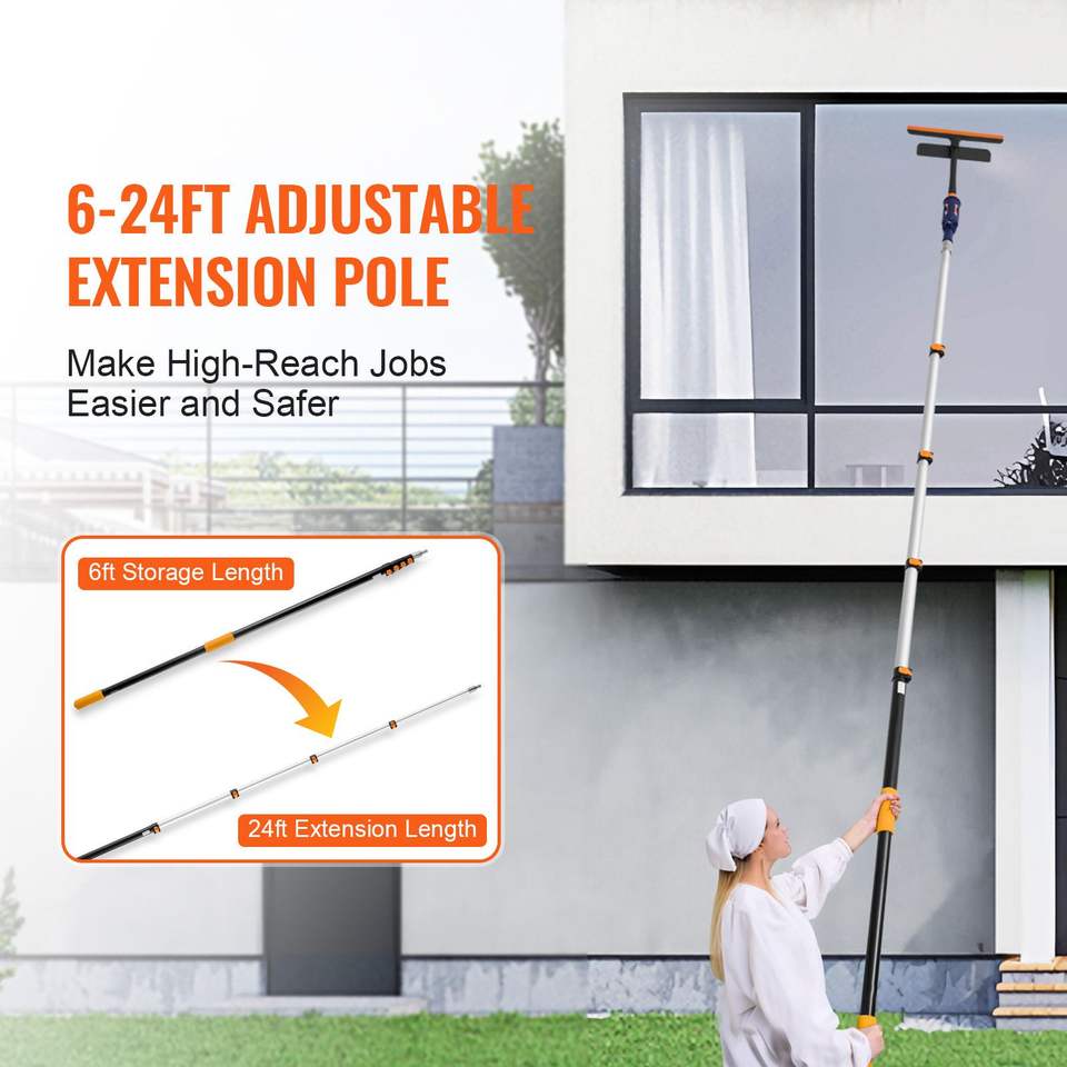 Robusta Asta Telescopica in Lega di Alluminio da 24 Piedi, Strumento di Pulizia Multiuso con Design Flip-Lock