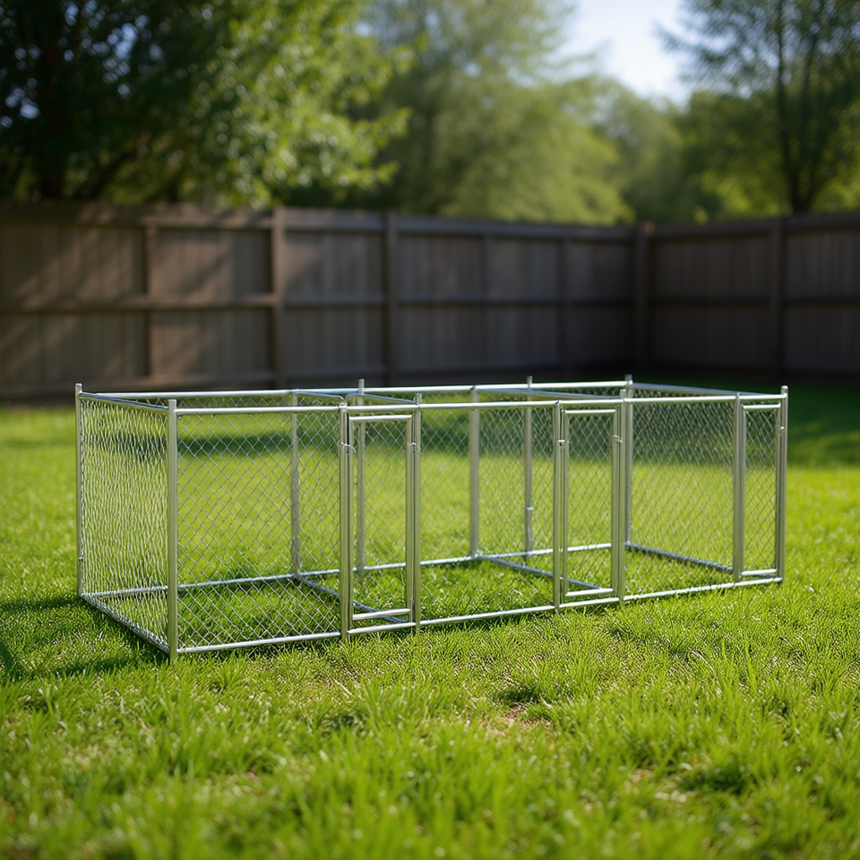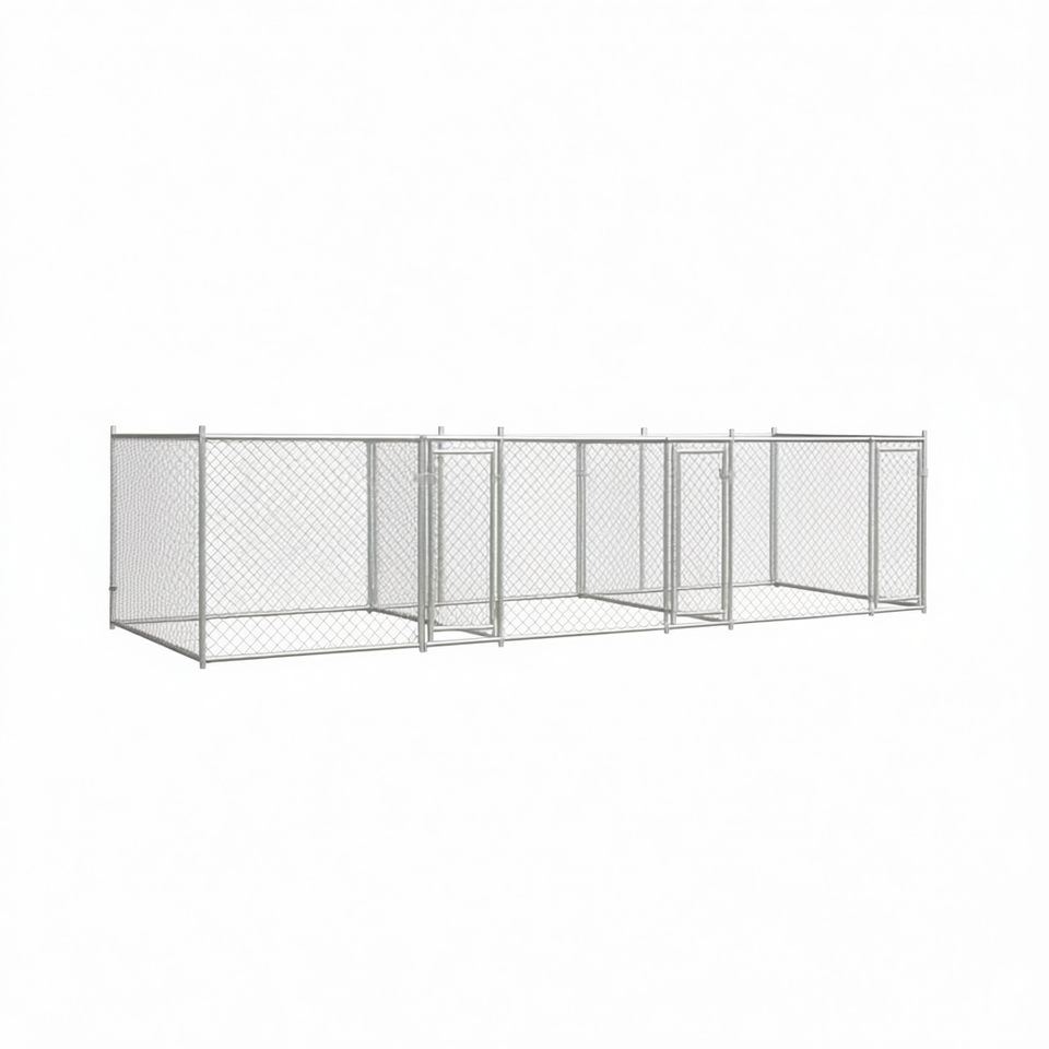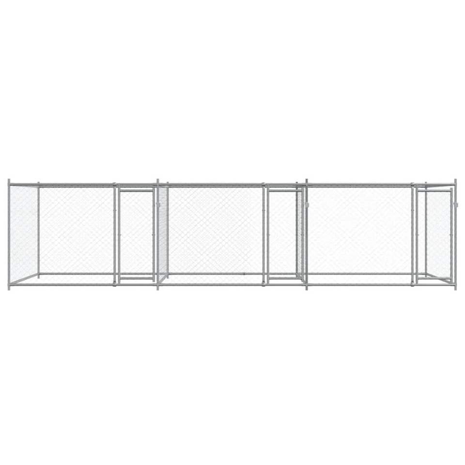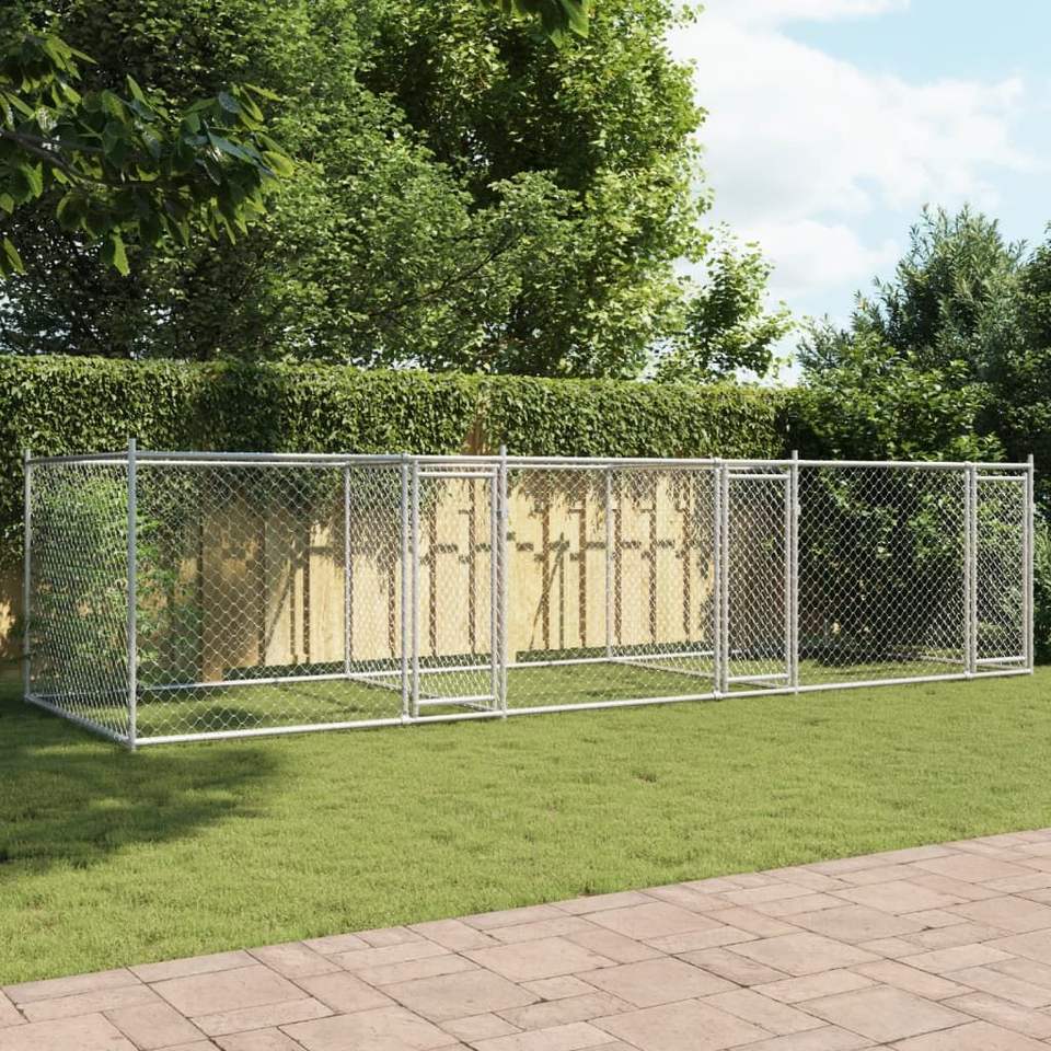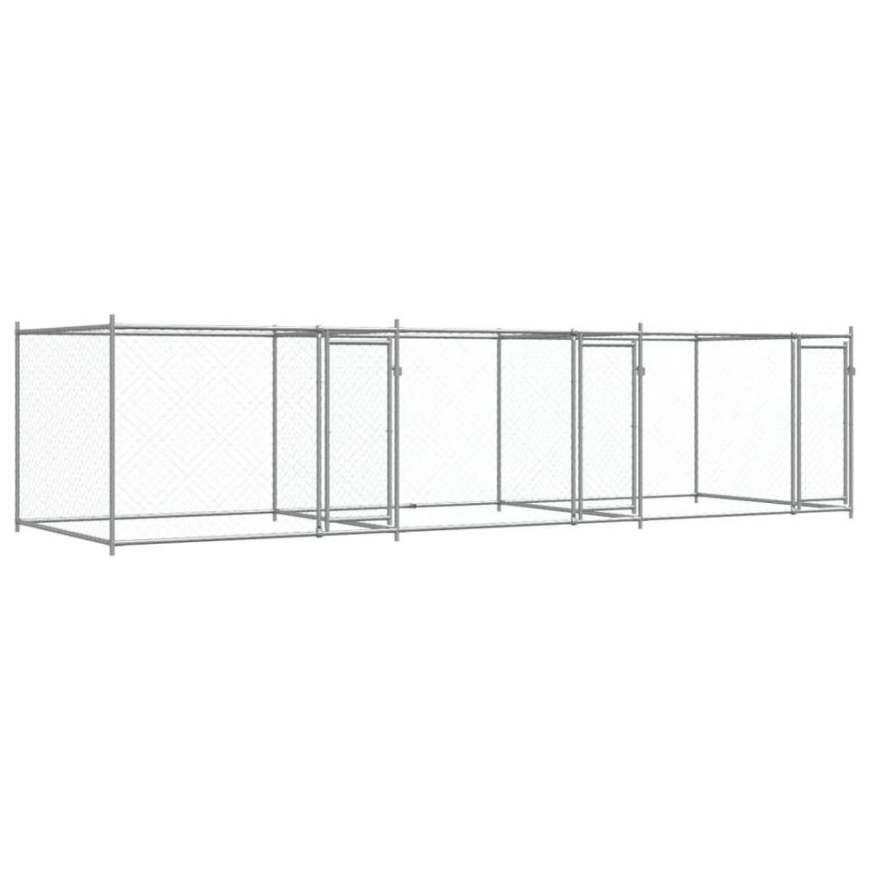 Gabbia per Cani Robusta in Acciaio Zincato 6x2x1,5 m Grigia, Gabbia Esterna per Animali Domestici Rettangolare Bloccabile per Razze Grandi
