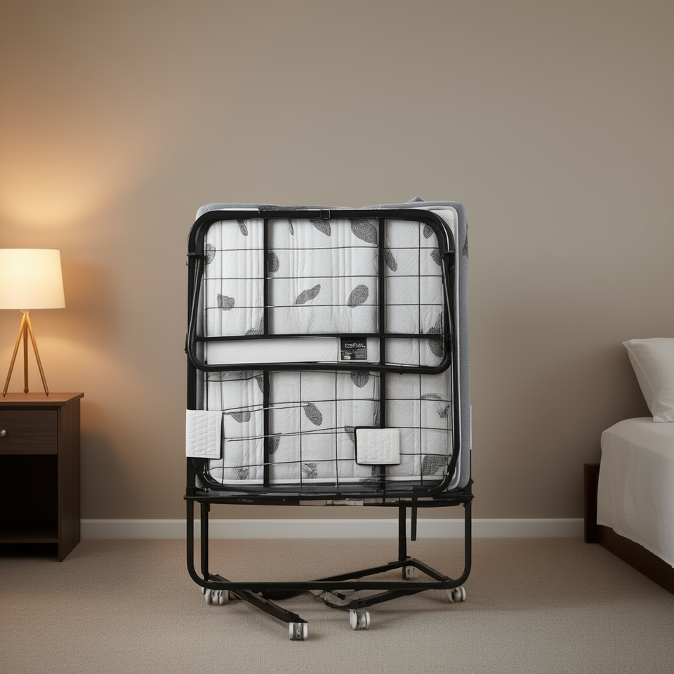 Letto Pieghevole con Telaio in Metallo Robusto 38 X 75, Letto Singolo con Materasso in Memory Foam, Portatile per Adulti e Ospiti